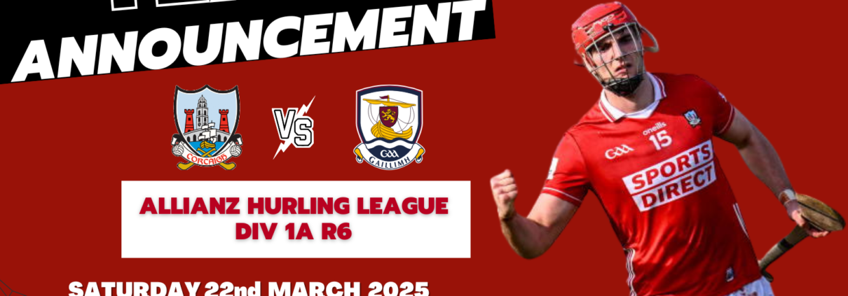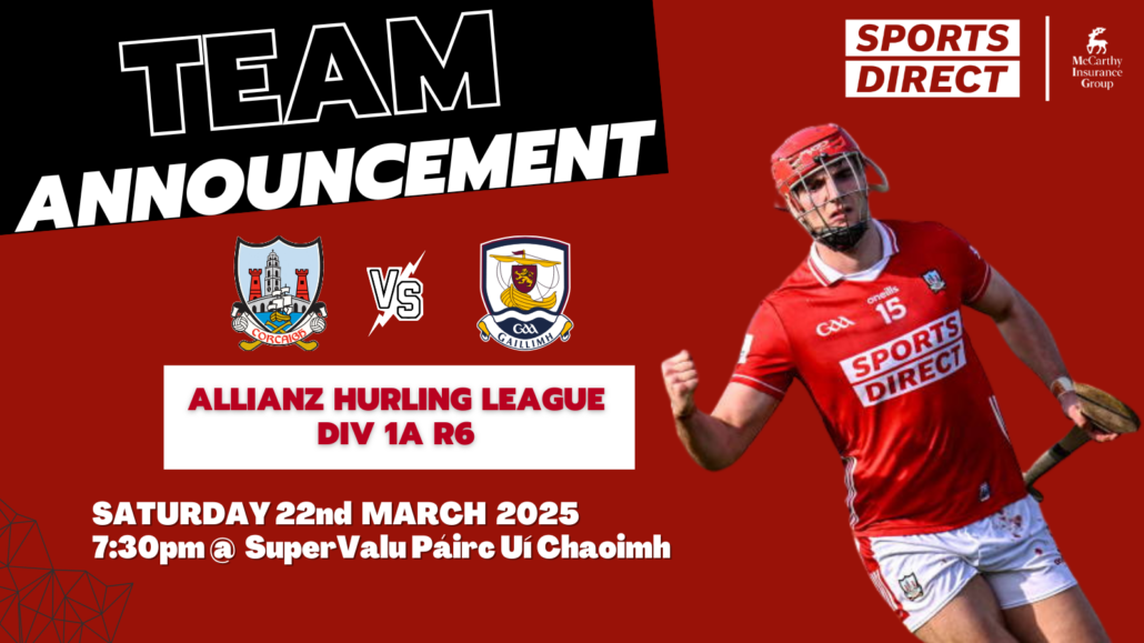 The Cork Senior Hurling Team to play Galway at SuperValu Páirc Uí Chaoimh on Saturday 22nd March in Round 7 of the Allianz League has been announced;1. Patrick Collins, Ballinhassig