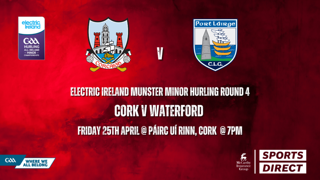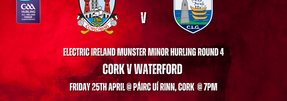 The Cork Minor Hurling team to play Waterford in Round 4 of the Electric Ireland Munster Championship at Páirc Uí Rinn on Friday 25th April at 7pm has been announced;