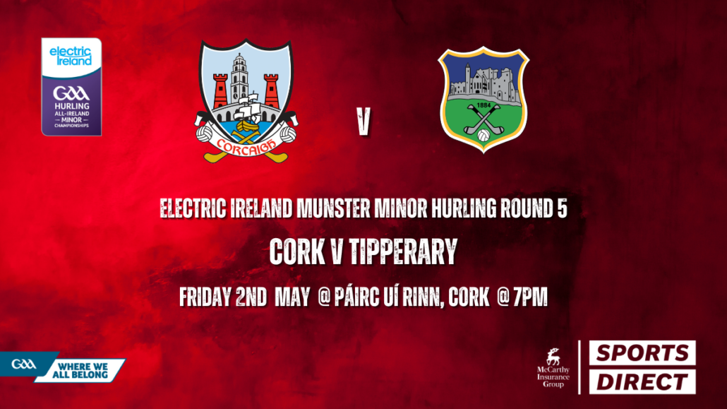The Cork Minor Hurling team to play Tipperary in Round 5 of the Electric Ireland Munster Championship at Páirc Uí Rinn on Friday 2nd May at 7pm has been announced;
