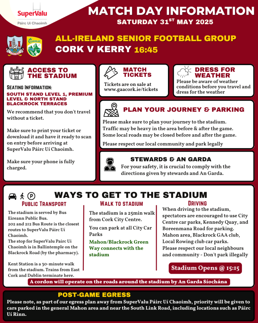 Match Day Stadium Information | Cork vs Kerry