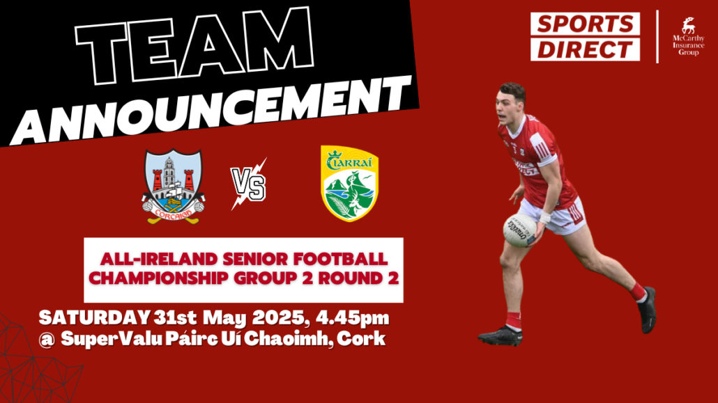 The Cork Senior Football team to play Kerry in Group 2, Round 2 of the All-Ireland Championship at SuperValu Páirc Uí Chaoimh on Saturday 31st May at 4.45pm has been announced;
