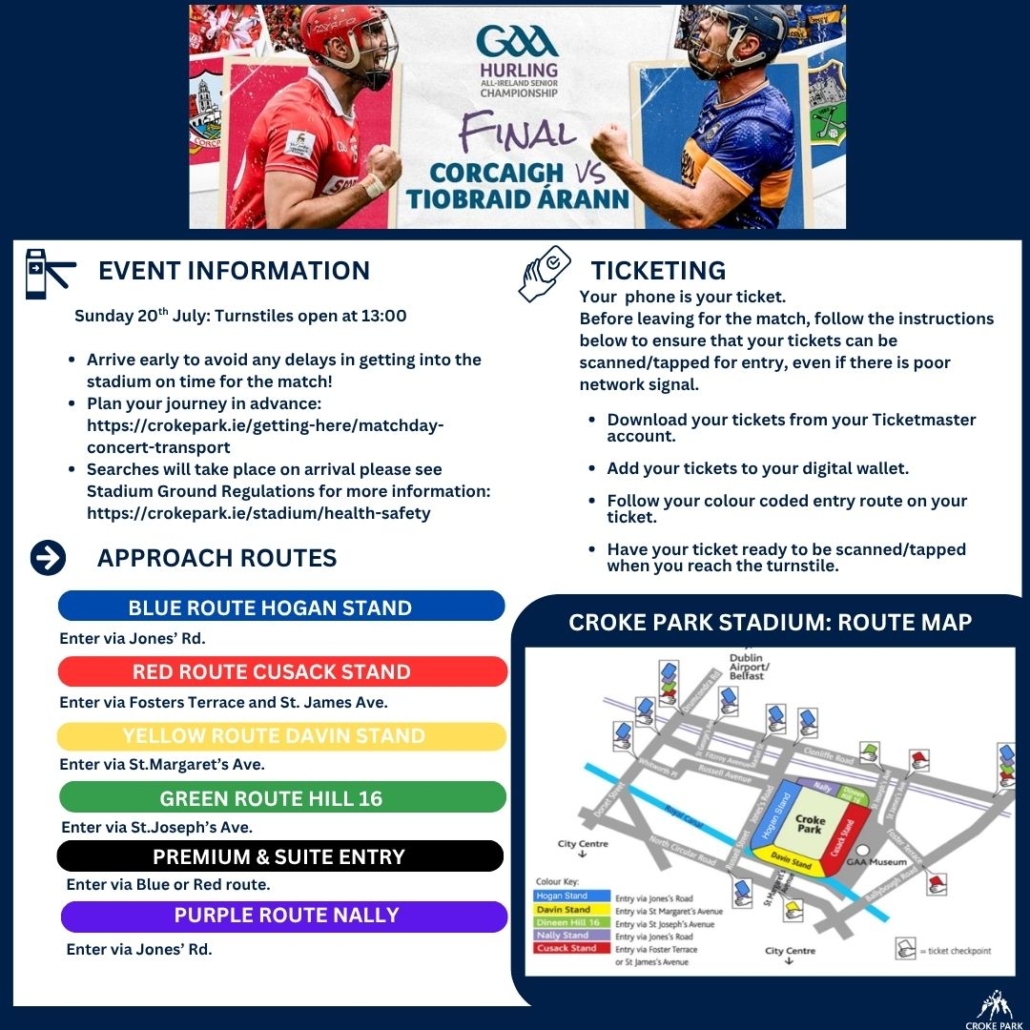 We look forward to welcoming you to Croke Park for an unforgettable final between Corcaigh and Tiobraid Árann!