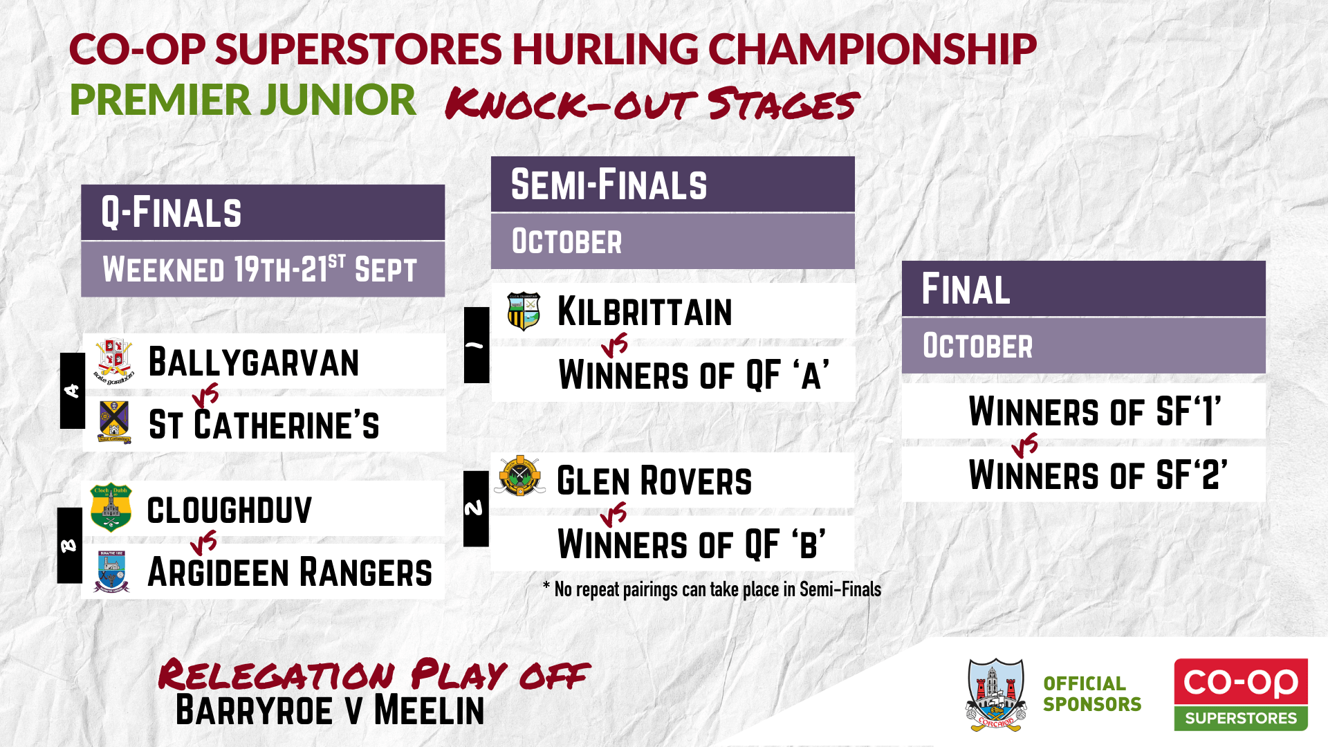 Following the conclusion of the group stages, the knockout rounds of the Co-Op Superstores Premier Junior Hurling Championship have been confirmed.