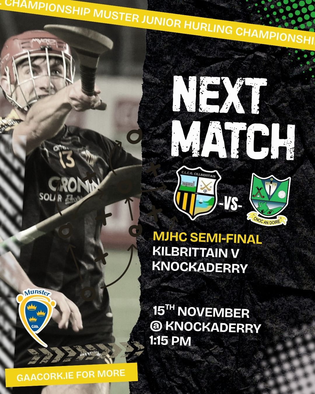 The Munster Club Junior Hurling Semi-Final between Kilbrittain and Knockaderry (Limerick) has been confirmed to go ahead as scheduled.