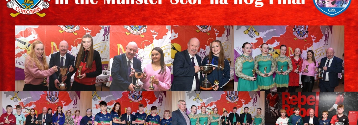 Best of luck to our Cork representatives; Cloch na gCoillte (Tráth na gCeist), Baile Nuis Camógaíocht (Rince Foirne), Donna Ní Mhuineacháin, Bóthar Buí (Amhránaíocht Aonair), Muireann Ní Mhuirthile, Béal Átha an Cheasaigh (Aithriseoireacht), Bóthar Buí (Bailéad Ghrúpa), Naomh Séamus (Nuachleas), Cloch na gCoillte (Ceol Uirlise), Bóthar Buí (Rince Seit).