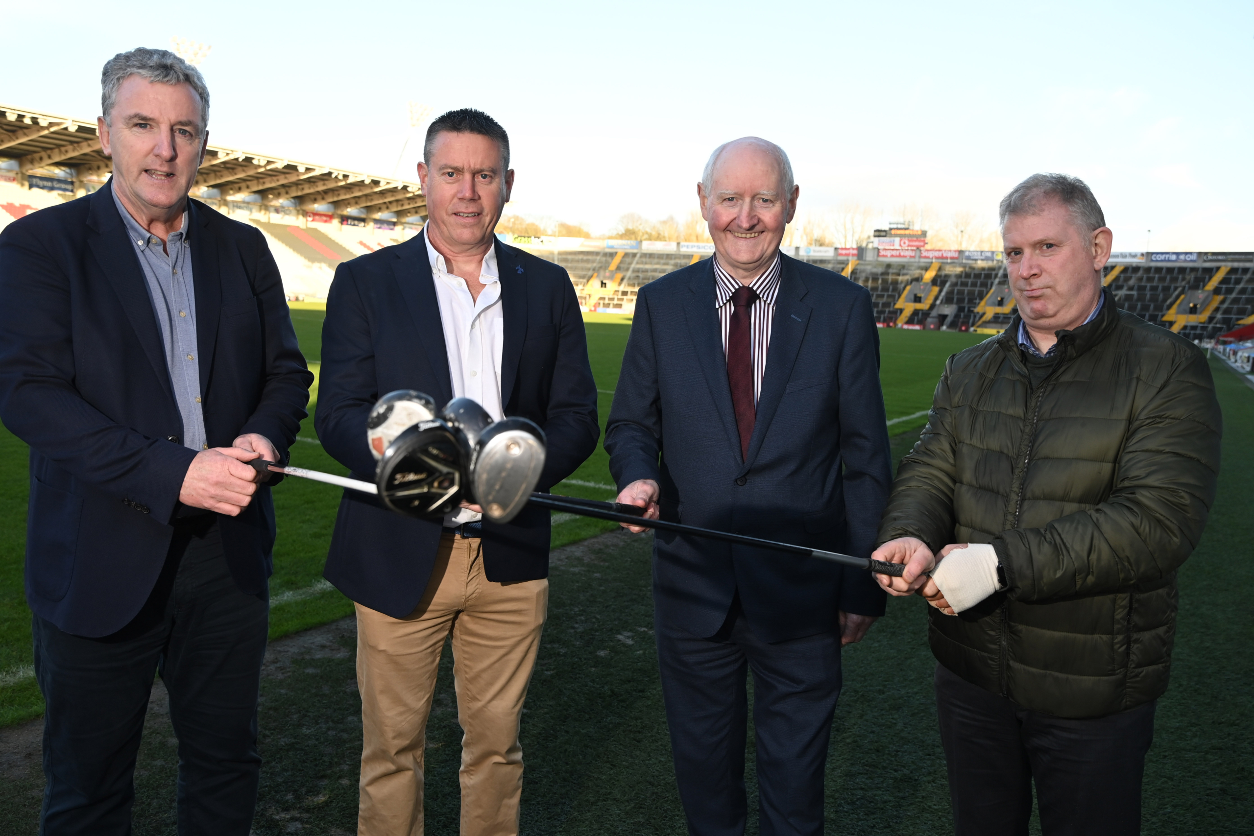 Pictured at SuperValu Páirc Uí Chaoimh at the launch of the Stand For Feile golf classic on April 17th and 18th at Kenmare golf club, were left, Barry Coffey, former Cork footballer and chairman organising committee , Ollie ‘Rue’O’Sullivan, chairman Garnish GAA; Pat Horgan, chairman Cork county board and Cormac McMahon, secretary Garnish GAA. Picture; Eddie O’Hare