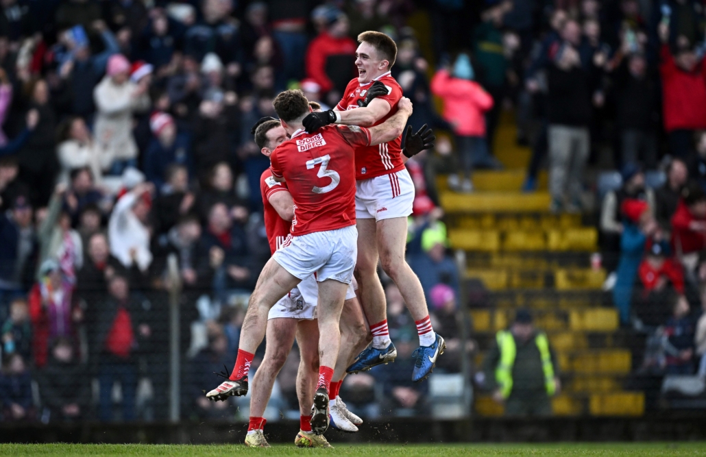 Cork still had to survive a late scare as Ciarán Caulfield’s two-point attempt dropped short into Adam O’Neill’s grasp, but Luke Fahy produced the game-saving block.