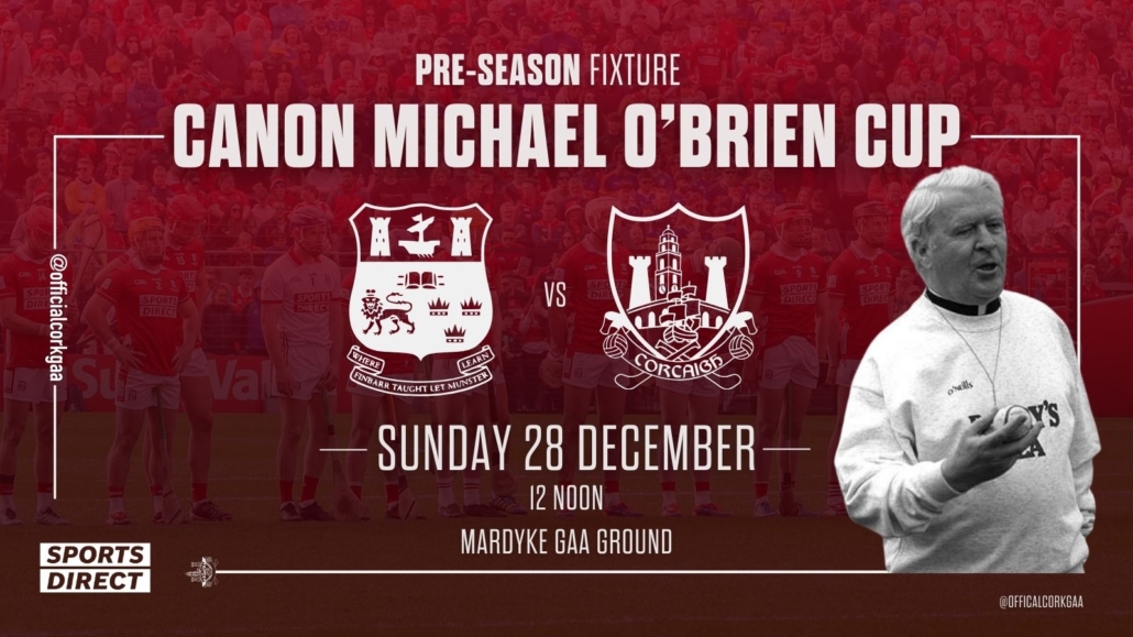 The Cork Senior Hurling team to play UCC in the Canon O’Brien Cup on Sunday 28th December 2025 at the Mardyke, Cork, has been announced;