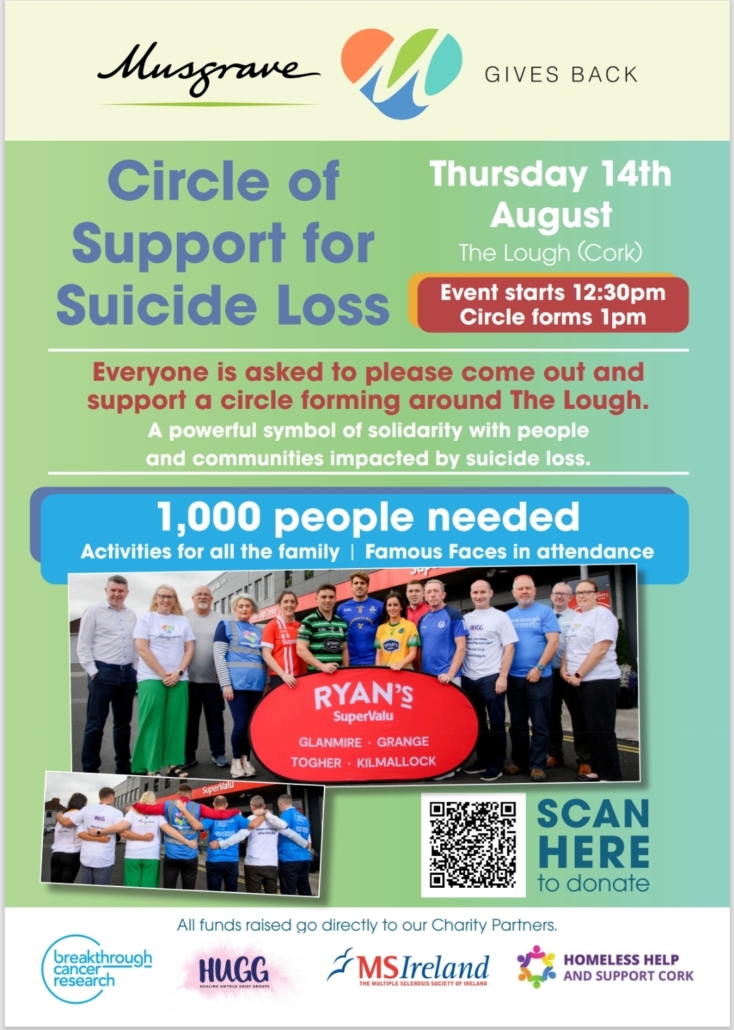 Cork GAA are delighted to share details of a powerful community event organised by Musgrave — the Circle of Support for Suicide Loss — taking place at The Lough, Cork on Thursday, 14th August 2025.