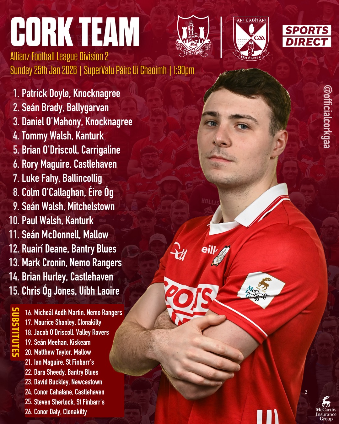 Cork begin their Allianz Football League campaign with a home fixture against Cavan. The Round 1 clash takes place at SuperValu Páirc Uí Chaoimh.