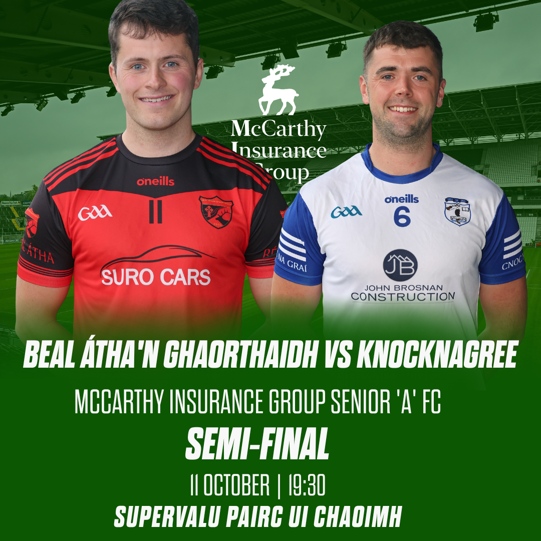 Béal Átha’n Ghaorthaidh will meet Knocknagree in the semi-final of the McCarthy Insurance Group Senior ‘A’ Football Championship.
