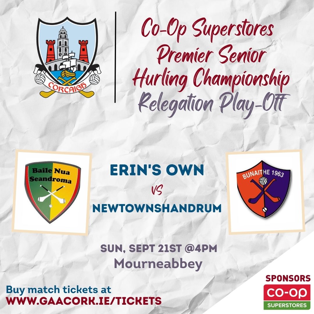 Erin’s Own and Newtownshandrum will meet in the relegation playoff of the Co-Op Superstores Premier Senior Hurling Championship.