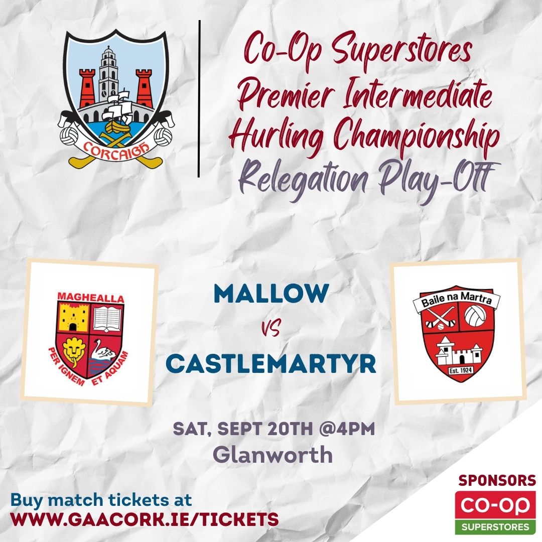 Mallow and Castlemartyr will meet in the relegation playoff of the Co-Op Superstores Premier Intermediate Hurling Championship.