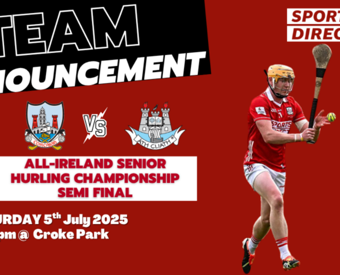 The Cork Senior Hurling Team to play Dublin in the All-Ireland Semi Final has been announced;