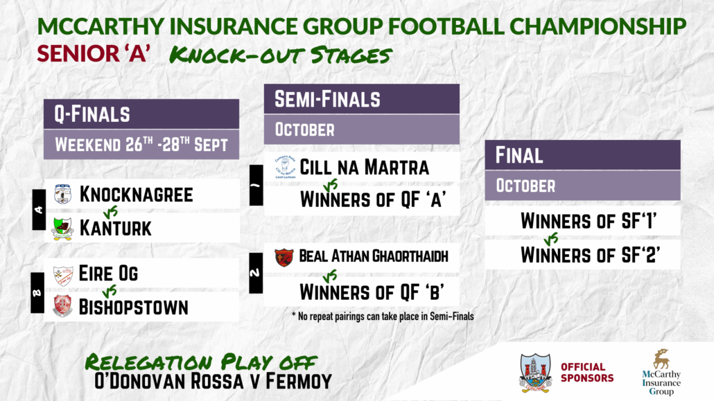 Following the conclusion of the Senior A McCarthy Insurance Group Football Championship group stages, the knockout draw is now confirmed!